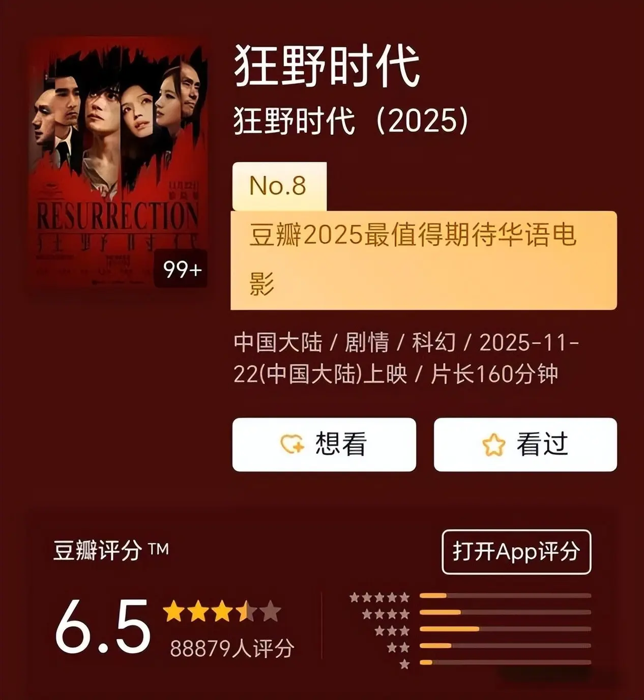 尤其是那句豆瓣2025最值得期待华语电影的第八名金标宣传,再配上底下6.5的评分,怎么看怎么觉得有点讽刺。