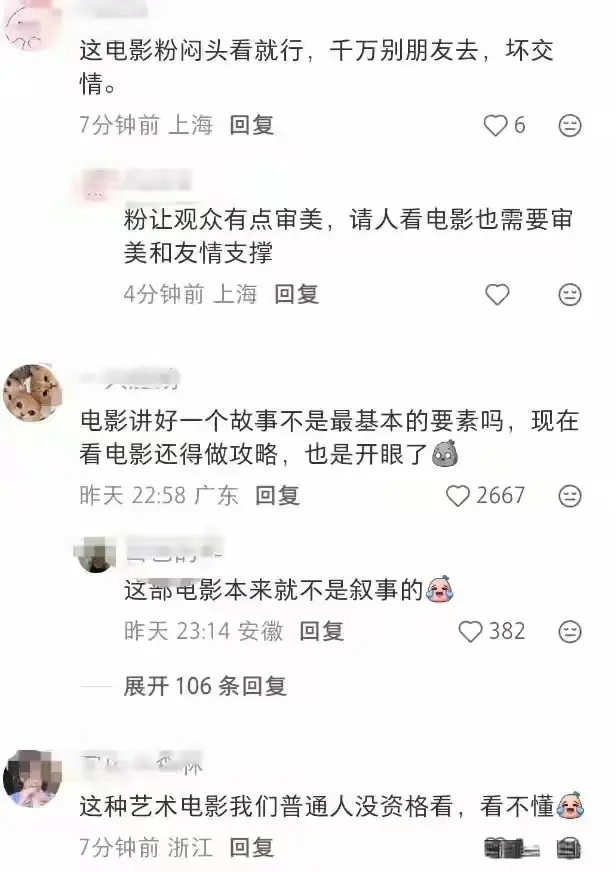 甚至在社交媒体平台上都说了,根本不知道导演要表达什么,分数自然高不了。